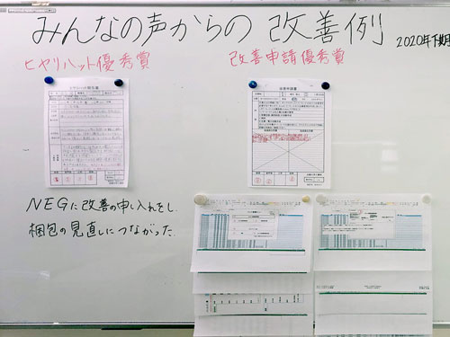 自ら問題を見つけ、日々向上していくため、全員参加の改善キャンペーンを行なっております。効率化はもとより、お客様から「ありがとう」がいただける提案ができないか、全員一丸となって真剣に考え、優秀な提案には、会長賞・社長賞等の表彰制度を設けております。